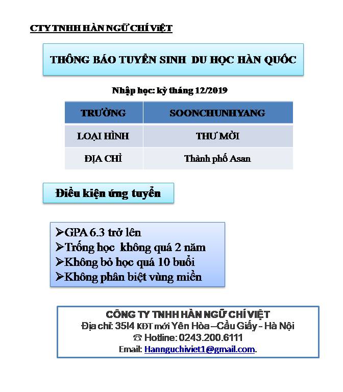⭕️ ĐẠI HỌC SOONCHUNHYANG: 30 CHỈ TIÊU - TRƯỜNG VISA THẲNG