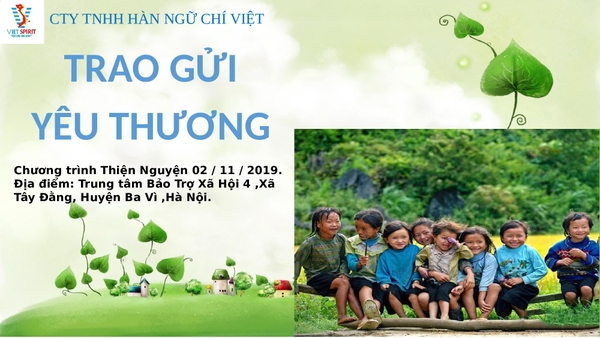 ❤️Với tinh thần lá lành đùm lá rách, Cty TNHH Hàn Ngữ Chí Việt phát động phong trào Thiện Nguyện “ Trao gửi yêu thương” nhận mọi sự đóng góp vật chất (không nhận tiền) cũng như tinh thần của của tất cả các bạn học sinh (nhận mọi sự đóng góp như: quần áo, sách vở , các nhu yếu phẩm...)