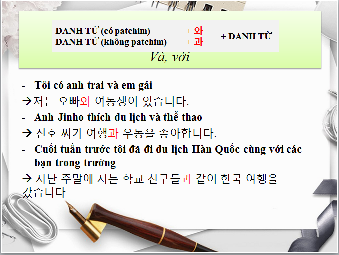 [MỖI NGÀY 10 PHÚT TIẾNG HÀN- NGỮ PHÁP 하고/와/과]